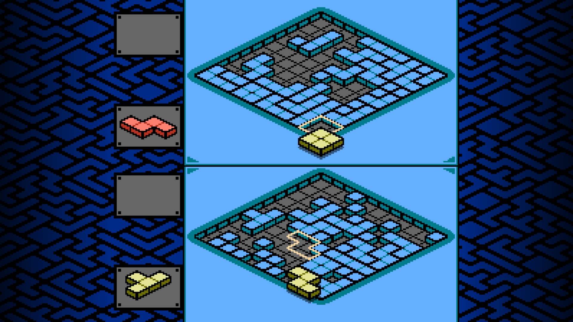- If a piece passes the grid without dropping into it, it is discarded and comes back 2 pieces later. If the same piece passes the grid a second time, it's game over.